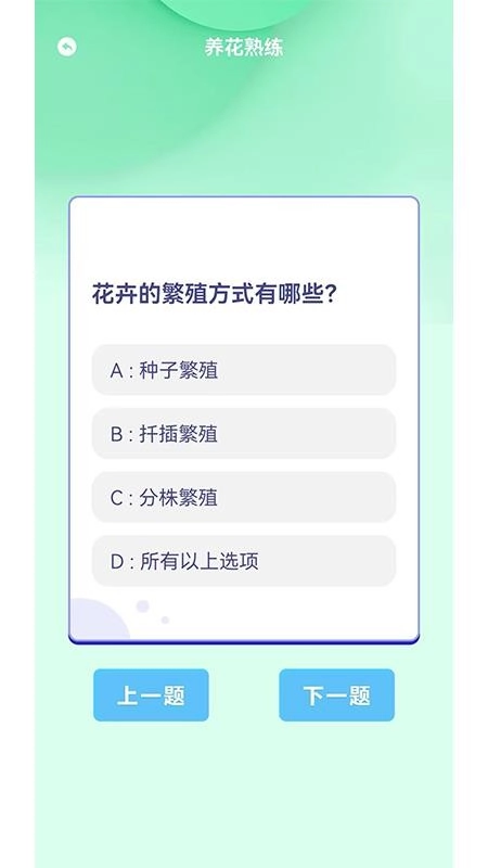 互动式园艺学习:以问答方式传授养花知识,题目设置既有趣味性又具专业性,能调动学习积极性,加深知识记忆。