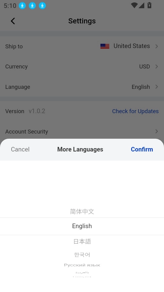 选择简体中文语言后,点击右上方的“Comfirm”按钮,即可成功切换设置语言。