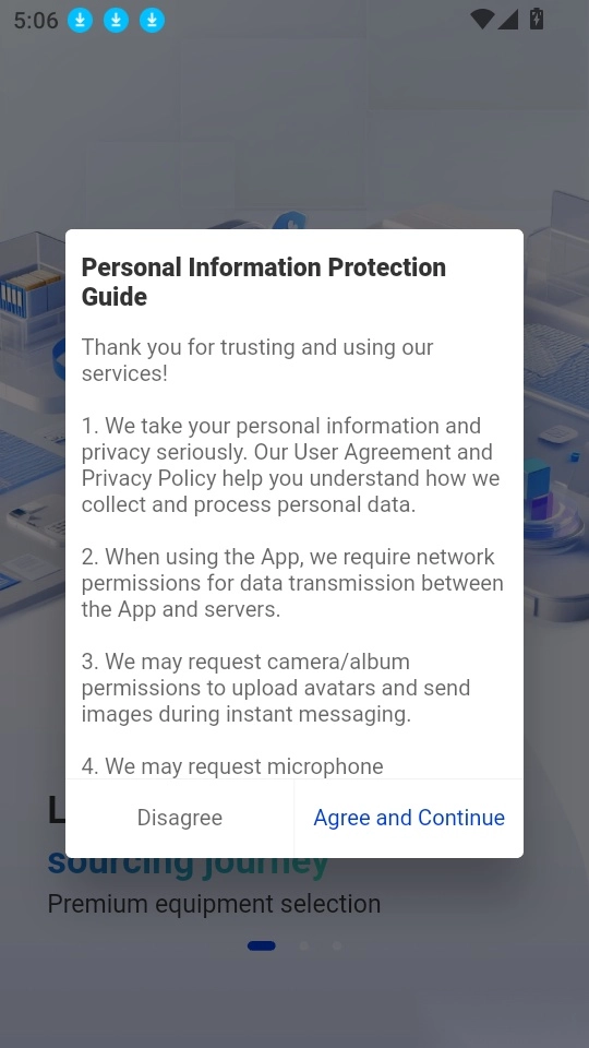 首先打开应用,点击“Agree and Continue”按钮进入应用内部。