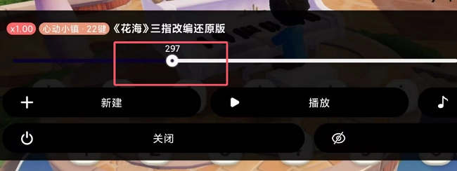 自定义进度控制:在控制台中,可通过拖动滑块来调节进度,滑块的单位为音符。如图所示,当前滑块显示数值为108,意味着播放进度处于第108个音符的位置(每完成一次模拟点击,进度便推进一个音符)。
