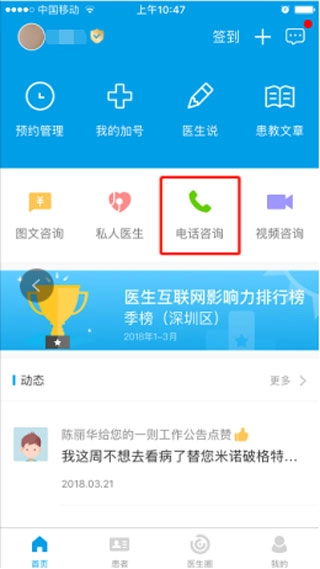 在本站完成160医护的安装后,打开应用并点击“电话咨询”选项,即可进入电话咨询页面。