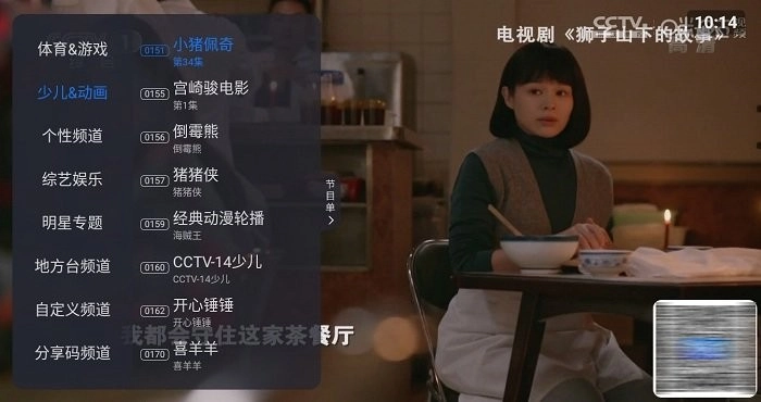 打开云海电视后,点击屏幕左侧区域,用户就能挑选想要观看的电视频道。