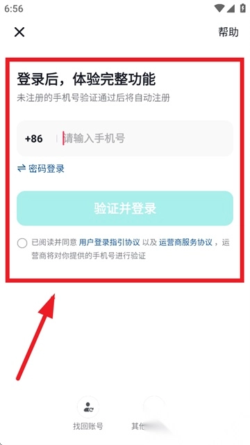 输入手机号和验证码完成登录