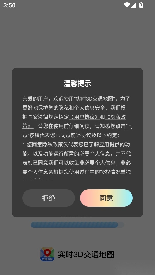 首先打开软件,阅读“温馨提示”内容后,点击“同意”按钮即可进入