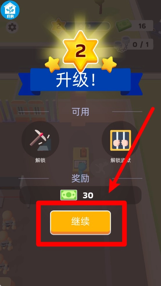 任务结束后点击“继续”按钮,即可领取奖励并完成升级,解锁的新功能能够帮助你更高效地开展监狱管理工作。