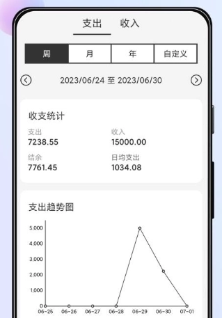 用户能够借助软件里的记账功能,查看自己每个月的消费趋势变动状况。