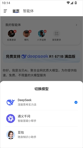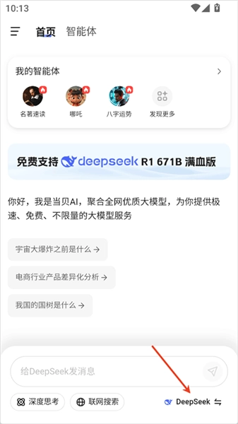 用户可在进入后点击右下角的语言大模型名称,该名称默认显示为deepseek。