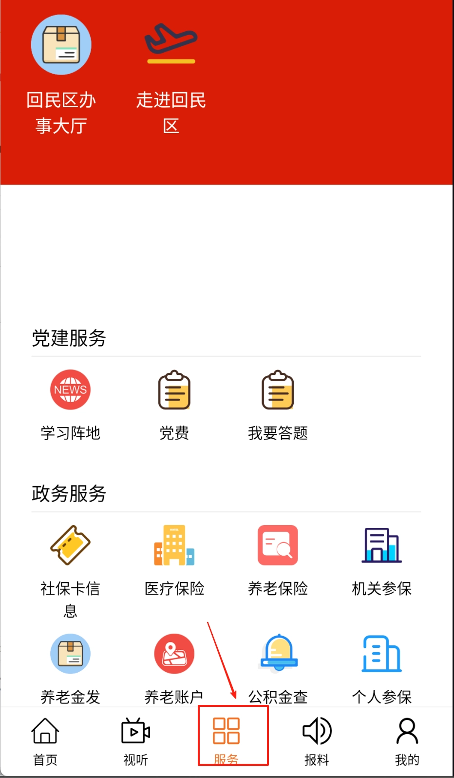 进入服务专区后,可选择话费充值、快递查询等民生服务功能;若需查找政策文件或民生资讯,输入关键词即可快速检索。