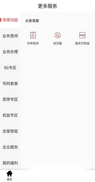 第二页是更多服务页面,所有服务项目按类别在左侧排列,用户可依据分类快速找到需要的功能。