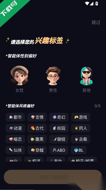 进入软件后,第一步是在首页浏览并挑选你感兴趣的角色类型。