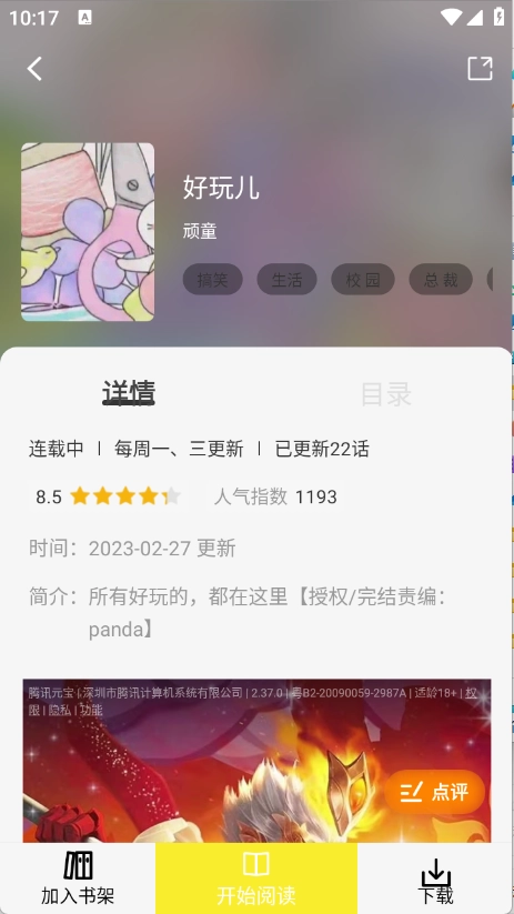 点开想看的漫画进入详情页,点击“开始阅读”。