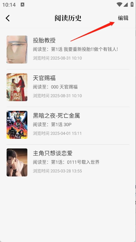 就会出现很多的阅读历史,点击右上角的“编辑”。