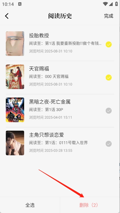 选择要删除的阅读历史即可。
