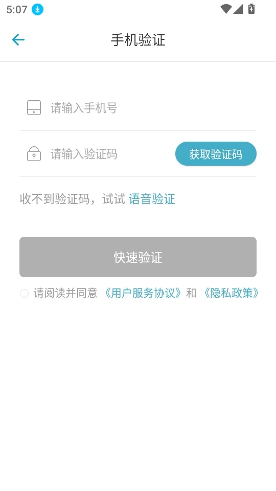 接着在登录界面里填写手机号与验证码,点击“快速验证”按钮完成一键登录操作。