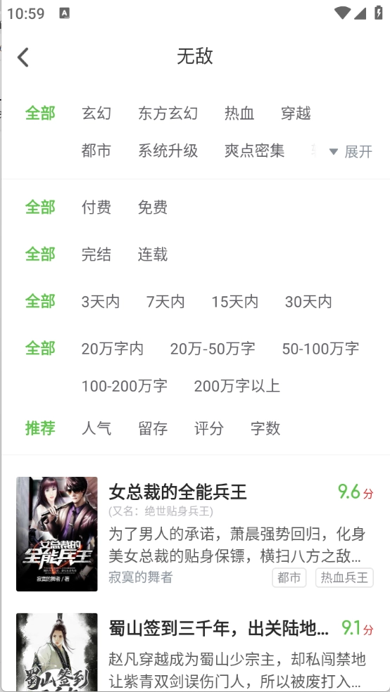 这款小说阅读软件可永久免费使用,涵盖的小说类型包括城市、奇幻、历史等。