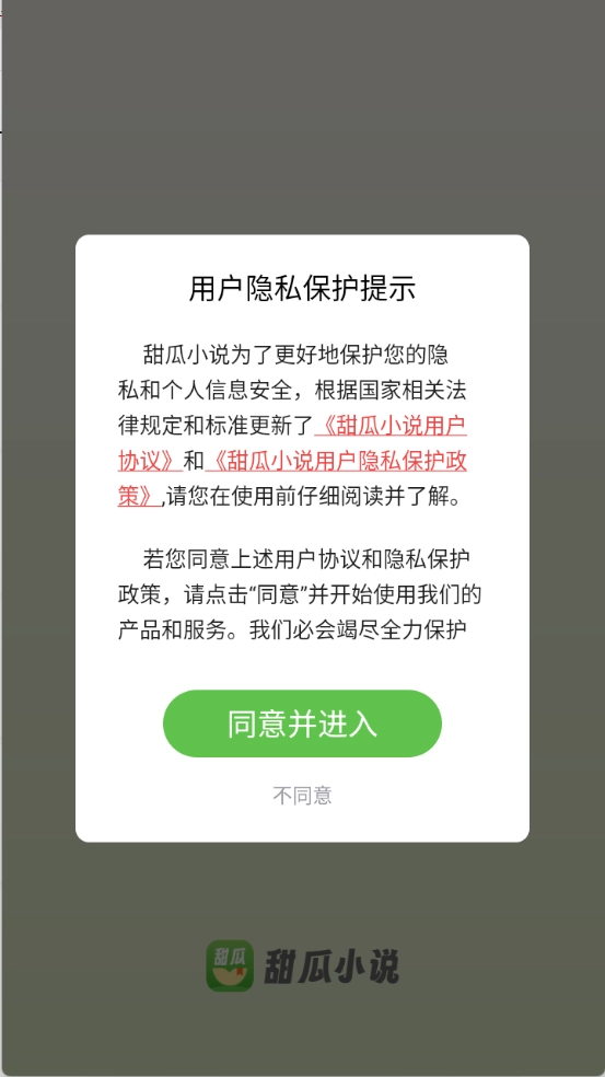 首先,请您在本站甜瓜小说平台上,查看并同意隐私政策以及用户协议。