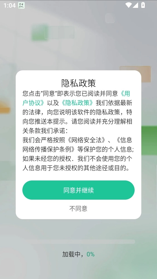 首先打开软件,仔细阅读“隐私政策”内容后,点击“同意并继续”按钮即可进入下一步操作。