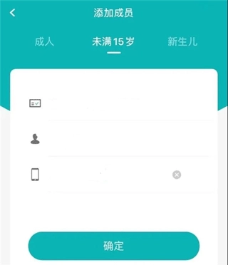 【年龄不满15周岁】请填写儿童真实的身份证号码、姓名以及联系电话,在确认所填信息准确无误后,点击【确定】按钮即可。