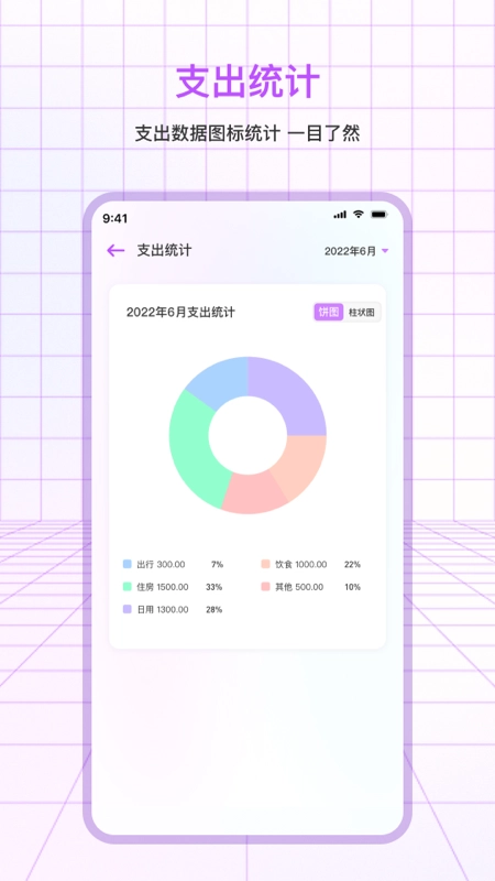 丰富的图表功能:收支变化趋势、分类消费排行等多种可视化图表,能帮助你快速直观地分析消费状况。
