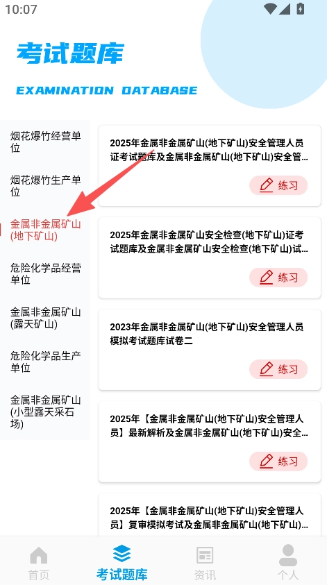 您可以先选定具体的考试类别,比如金属非金属矿山地下矿山这类,再去查看与之对应的试题清单。