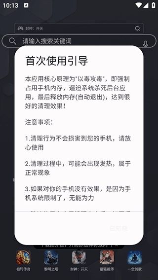 建议在玩游戏前或设备使用时间过长时进行内存清理操作,这款工具的清理效果比重启设备更流畅,原因是它不会触发开机自启动应用的运行。