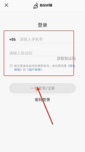 3、直接输入手机号验证登录,新手机号自动注册。