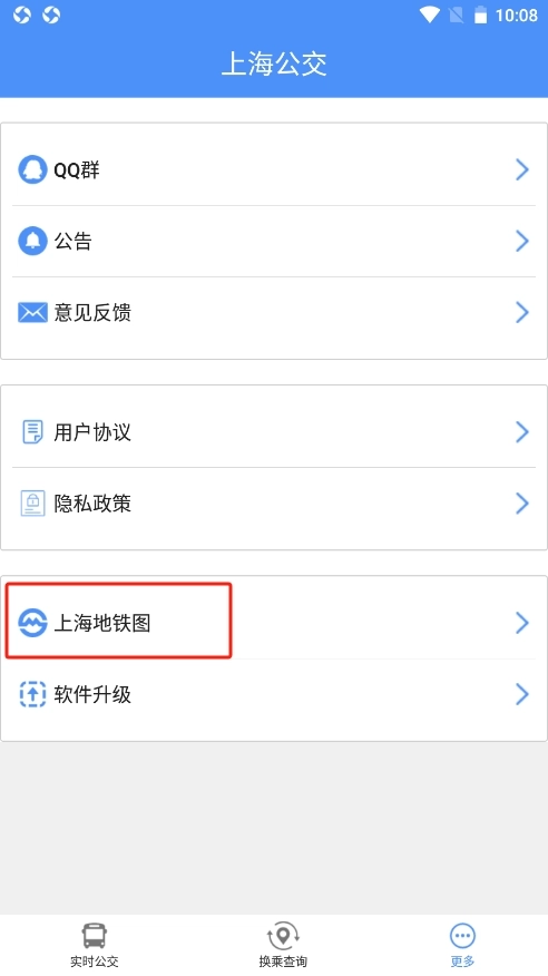 另外,该软件除了能查询公交线路外,还支持查看上海地铁图。具体操作是点击下方功能栏里的【更多】选项,接着再点击【上海地铁图】就可以了。