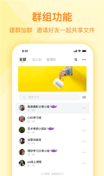 用户能够创建群组,和其他人一起共享文件,开展高效的文件协作。