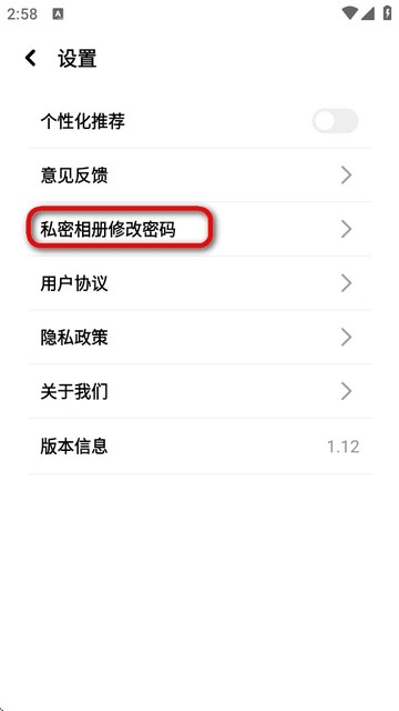 选择私密相册修改密码。