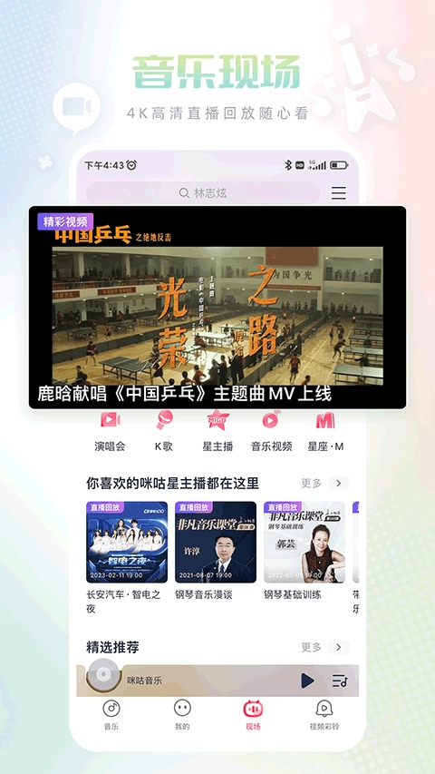 点击直播板块,这里汇聚了演唱会、音乐视频等内容,同时还提供购票、K歌等多样化功能。