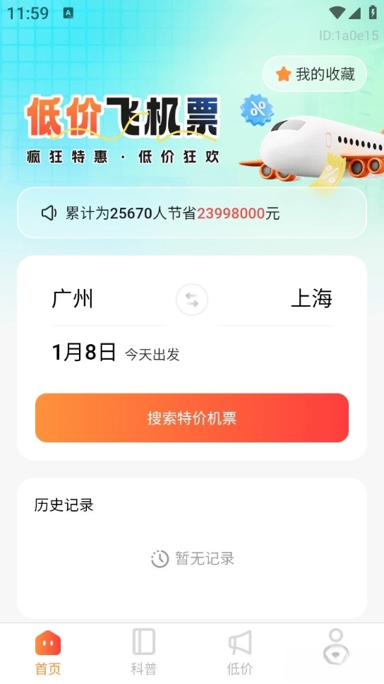 应用界面清晰简洁,方便用户日常查询机票,也便于查看所有收藏和提醒的机票。