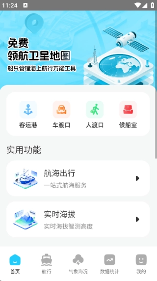 首页可直接浏览航海出行、实时海拔等核心功能;