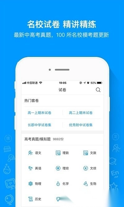 题目覆盖范围很广,从初中、高中到高考的习题都能找到,界面设计简洁,操作起来很容易,非常值得推荐给大家。