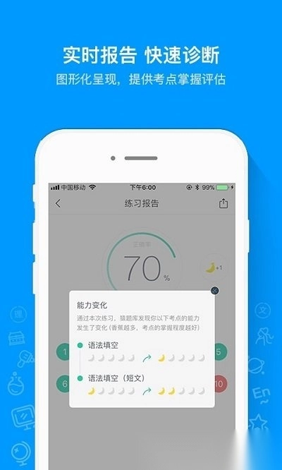 即时生成练习报告,进行能力测评并预估考试成绩;