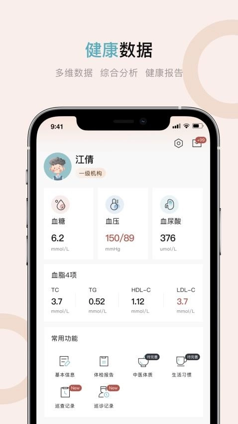 健康档案管理:对用户的身高、体重、血压等基础信息进行记录,便于用户能够随时查阅。