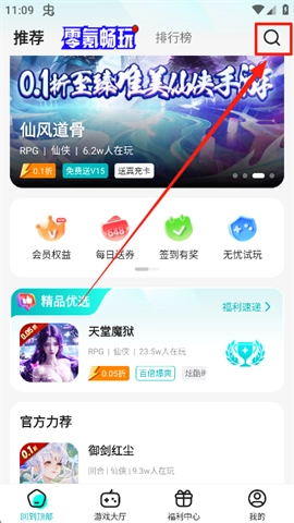 点击右上角的放大镜图标,就能快速搜索游戏,轻松找到目标。