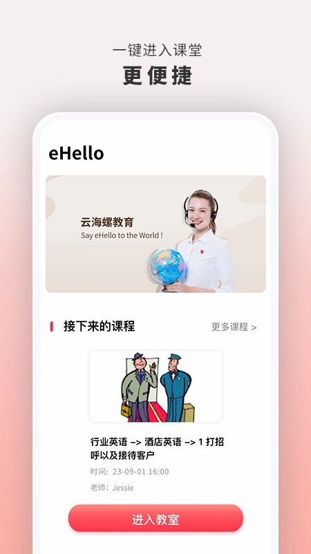 一键开启:轻轻一点,就能进入云海螺在线1对1,轻松高效地开启你的英语口语培训之旅;