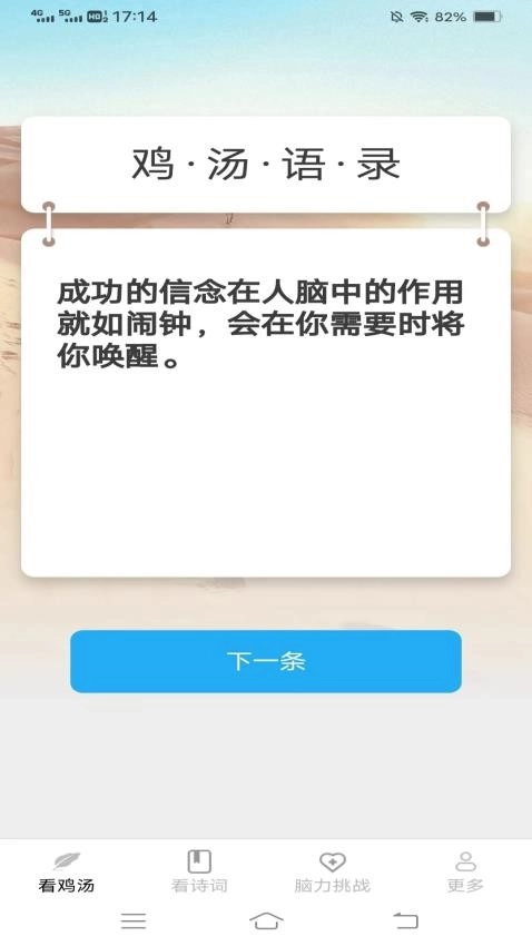 句子库句子库功能丰富多样,涵盖词语收录、例句展示、同义词与反义词查询、语境用法解析等,助力用户深度理解并记忆新词汇。用户可随时记录和回顾遇到的生僻词汇或精彩语句,还能将优质内容分享给好友,共同提升文学素养。此外,软件会实时更新好词好句资源,为用户带来更优质的名人名言阅读体验。