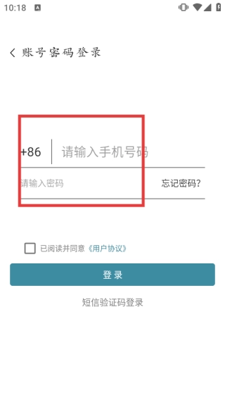 输入手机号码和密码,勾选协议。