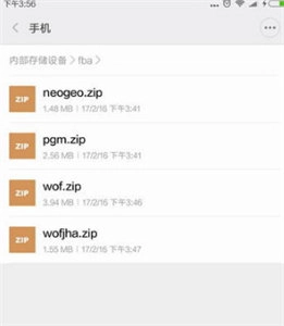 接下来准备好需要的街机游戏ROM文件,再把这些文件复制到手机存储里的指定文件夹,一般是fba文件夹。