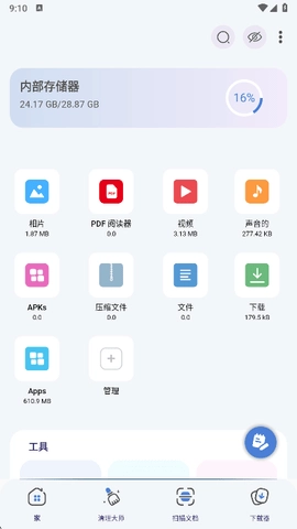 在首页,您能够看到各类文件管理相关的功能,像文件浏览、文件清理以及文档扫描等都包含在内。