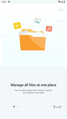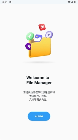 ZZXFilemanager拥有友好的界面,用户首次使用时,只需同意文件权限就能进入首页。
