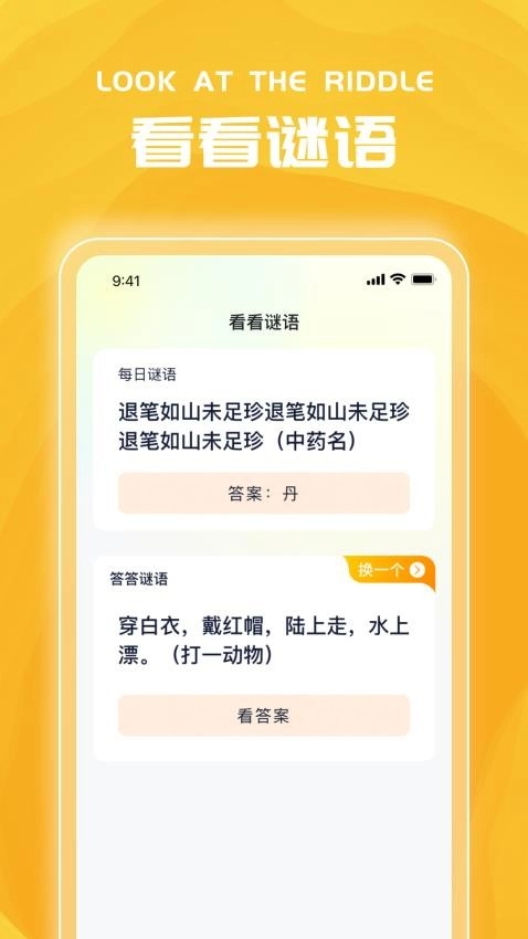 拥有着丰富的谜语题目来让用户在线答题,认识更多新谜题来答题学习。