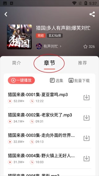 找到你心仪的书籍后,你可以挑选这本书的章节来听书。