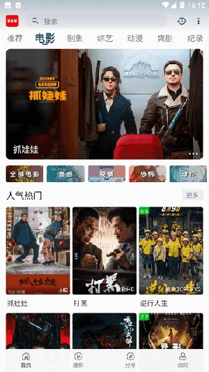 安装完成后,打开软件,首页更新的有热门影片。