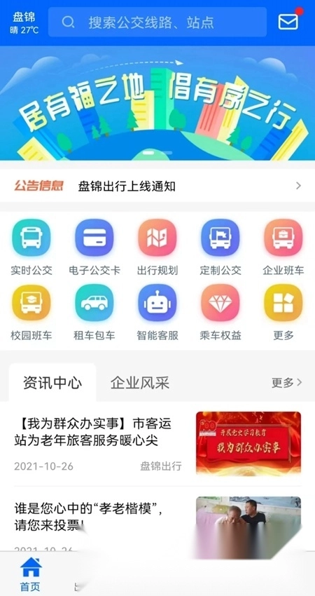 盘锦出行是专门为本地市民打造的便捷交通服务平台,用户借助它能够随时了解公交实时动态,查询火车和汽车票务信息,平台还整合了电子公交卡以及线上服务大厅等实用功能,为日常通勤和出行带来了诸多便利,感兴趣的朋友可以在本站体验一番。