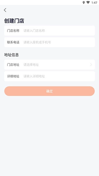 按照页面提示填写门店相关信息,务必保证内容准确无误,填写完成后点击确定按钮。