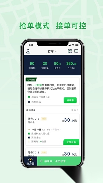 便捷智能:依据司机的实时位置与运营时段,智能匹配并推送适配的订单;