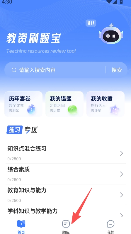 打开软件进入首页,点击题库模块。