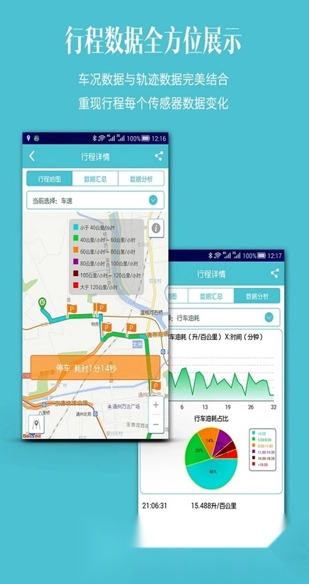 对行程分析功能进行了优化,新增加了平均速度占比分析、出行时段分布图以及平均油耗占比分析这几项内容。